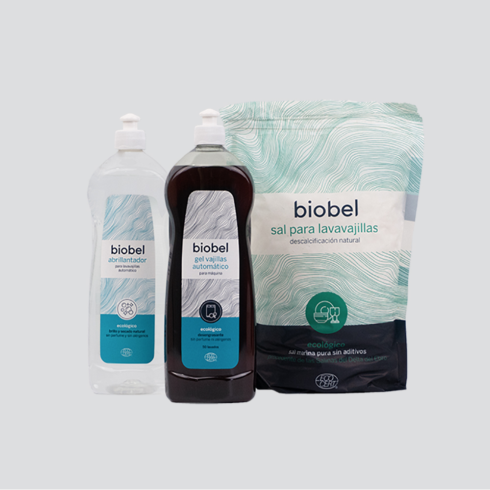 Para una limpieza perfecta, a la vez que saludable y sostenible, en zonas de agua dura recomendamos utilizar sal y abrillantador ecológicos Biobel.